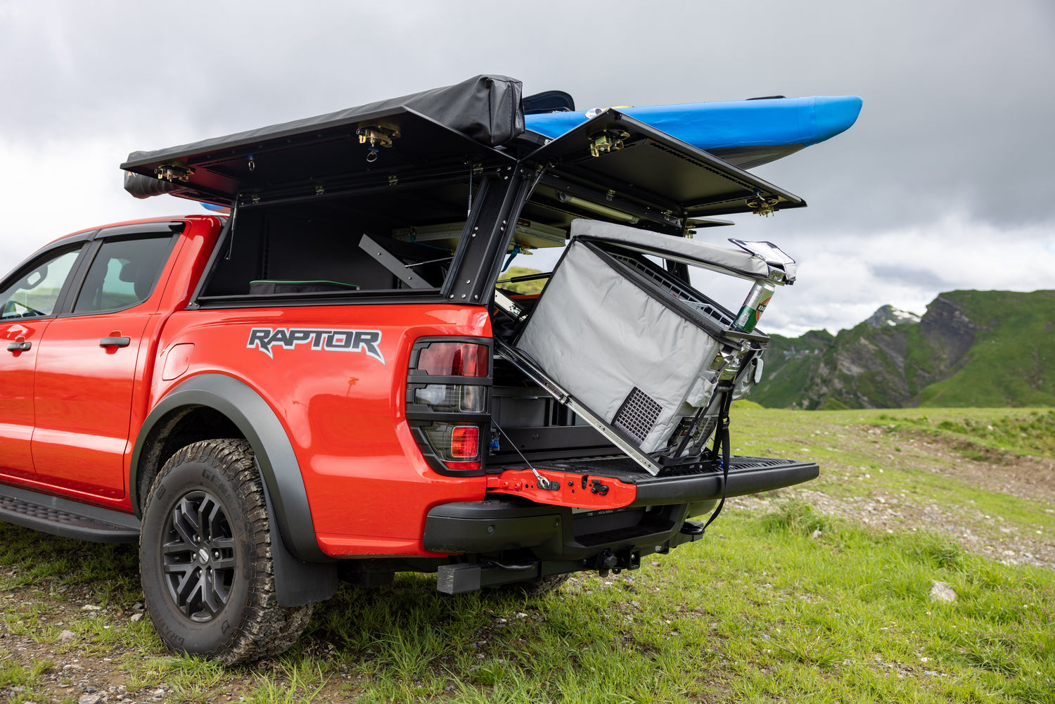 Le tiroir ROCKALU, équipé d'un plateau supérieur extrêmement robuste et d'un tiroir coulissant de grande qualité pouvant accueillir jusq'à 5 caisses RAKO standard (600x400) dans la version double cabine.