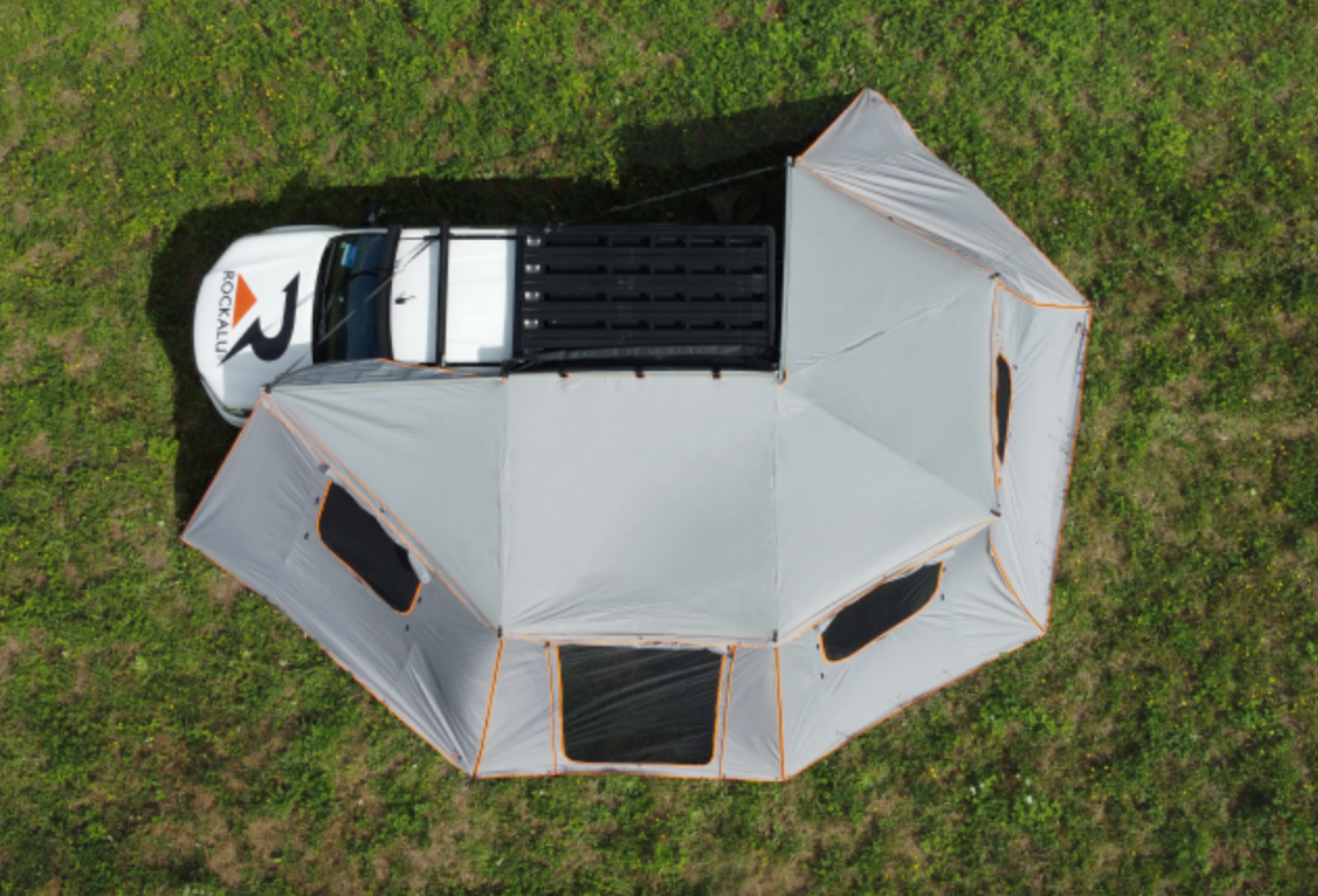 Le dernier né de la gamme ROCKALU, l'auvent autoportant 450°, qui peut se transformer à l'aide de parois en un abri confortable, vous accompagnera dans tous vos voyages.